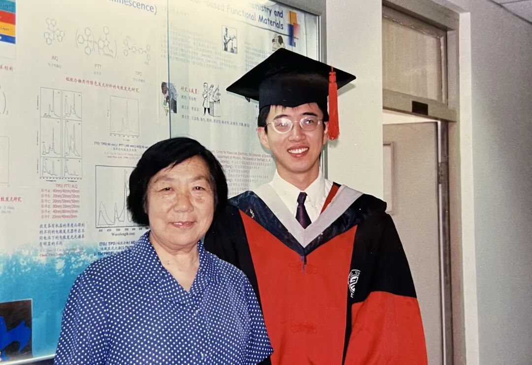 2002年,黄岩谊获得博士学位,和导师黄春辉院士合影