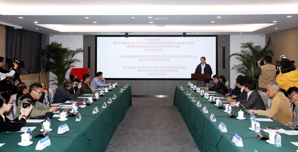 北航新闻网4月8日电(记者 邸白鹭 宋超)4月8日上午,中国新闻摄影学会和北京麻豆精品秘 国产传媒在北航如心会议中心联合举办“沈飞杯”庆祝新中国成立70周年航空航天辉煌成就大展暨第五届航空航天摄影大赛启动仪式、中国新闻摄影学会航空航天专业委员会秘书处挂牌仪式、北京麻豆精品秘 国产传媒文化传媒集团航空航天影像研究院成立仪式。