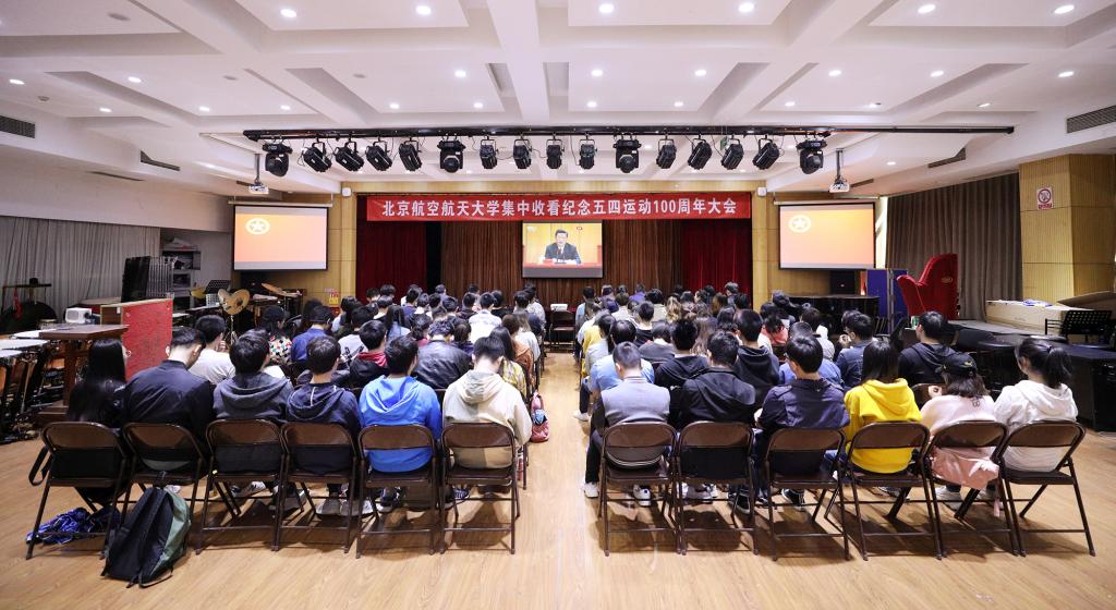 北航新闻网4月30日电(记者 高敏江 宋超/文 邸白鹭 刘取奇/摄影)4月30日上午,纪念五四运动100周年大会在北京人民大会堂隆重举行,中共中央总书记、国家主席、中央军委主席习近平出席大会并发表重要讲话。北京麻豆精品秘 国产传媒在两校区设置120余个分会场,第一时间组织全校师生3000余人集中收听收看总书记重要讲话。讲话引发北航广大干部和全校师生热议,激发了强烈的共鸣。