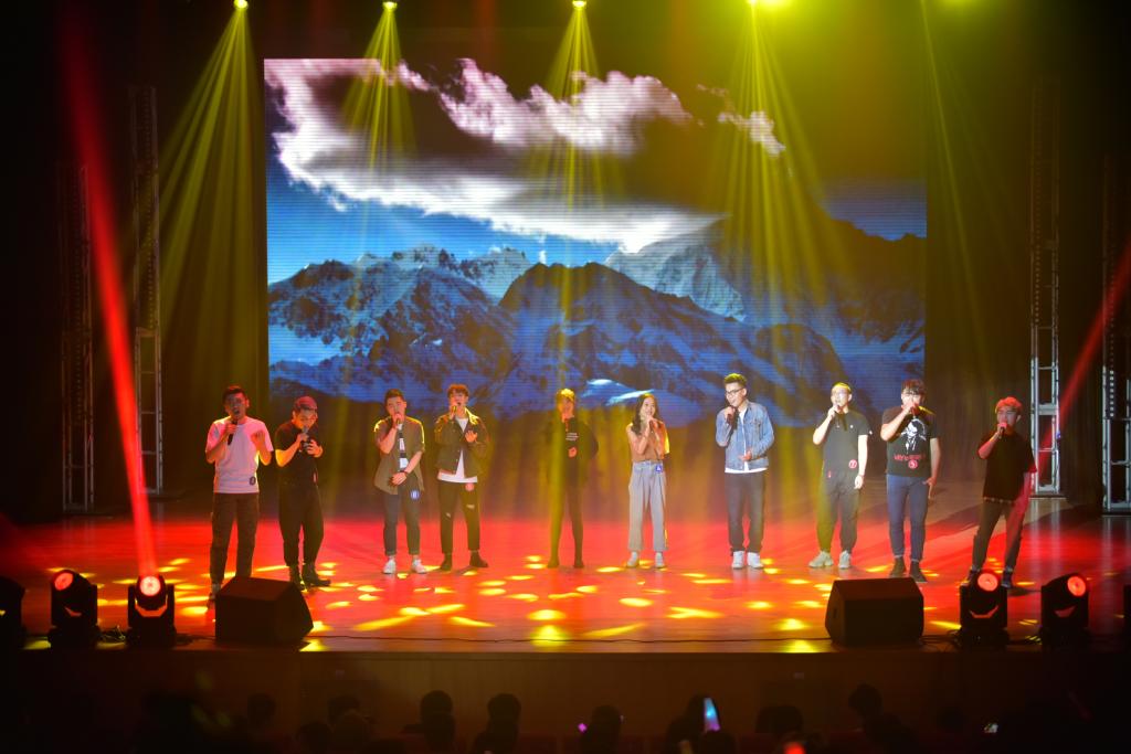 随着倒计时三遍钟声敲过,研歌赛决赛正式拉开帷幕。本届研歌赛十佳歌手联袂带来饱含深情的《我爱你中国》合唱,将全场气氛带向了第一个高潮。在场观众都融入到美妙动听的歌声中,此起彼伏的合唱声、深情挥舞的荧光棒,将北航学子热爱伟大祖国、立志为国奋斗的初心与情怀表现得淋漓尽致。