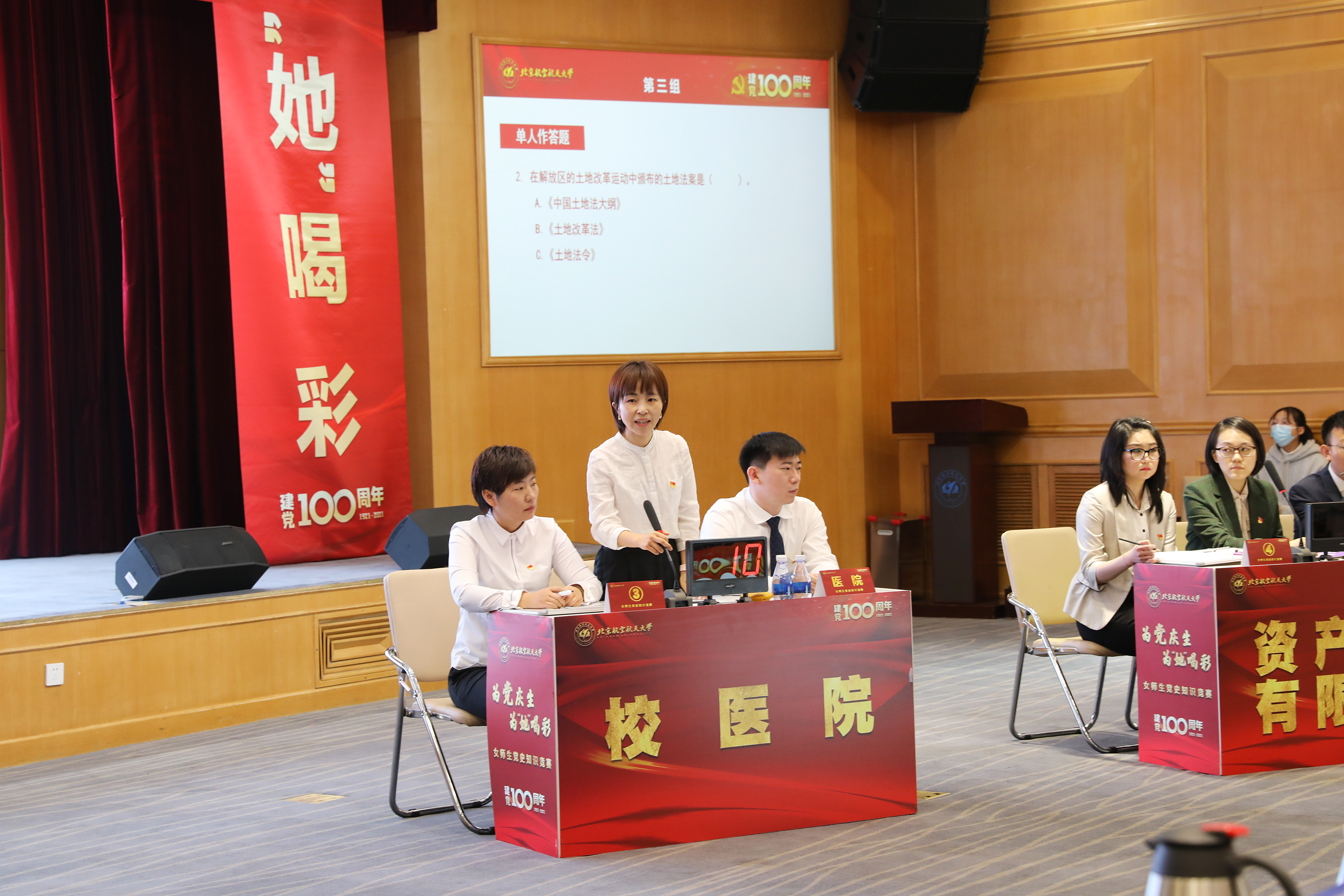据悉,由校工会、女工委员会主办的“为党庆生、为‘她’喝彩”女师生党史知识竞赛于2月20日正式拉开帷幕,共有学校36个二级单位和部门选派了68支队伍参赛,136名女师生和68名男助攻,经过认真学习和精心准备,在3月3日的线上初赛中,以平均1分钟完成10道题的速度,取得了90分的平均分,展现了深厚的党史知识储备和理论素养。3月5日,初赛前8支队伍进行了一场激烈的复赛,经过必答题、轮答题、抢答题和加赛题最终决出四支参与决赛的队伍。