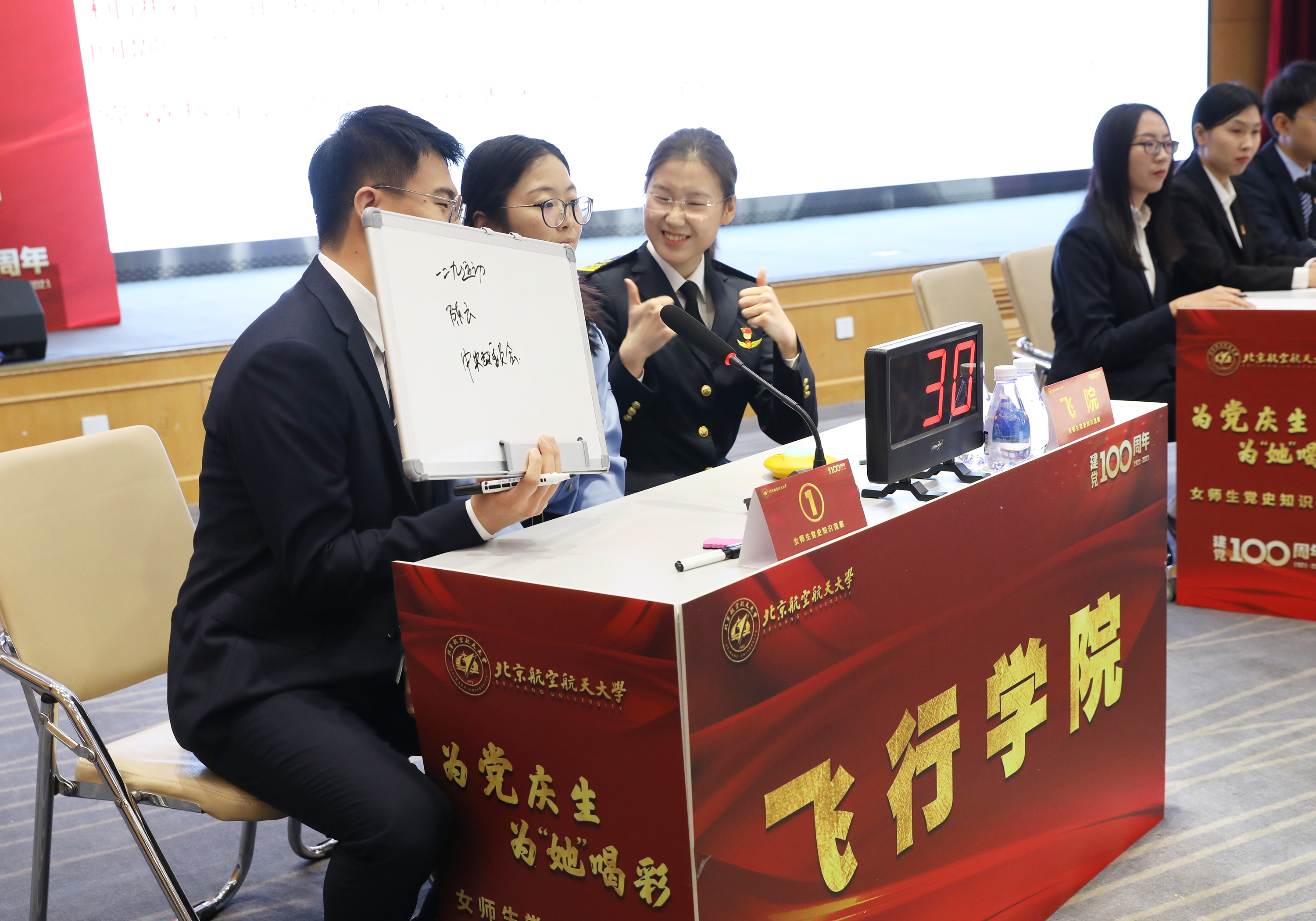 决赛共分为“小试牛刀”“默契配合”“眼疾手快”和“党史中的女英雄”四个环节,经过激烈角逐进入决赛的4支参赛队伍凭借精准的回答,默契的配合,投入的演讲和表演,引得现场不时爆发出阵阵掌声。活动不仅展现了大家学习党史、领悟思想、致敬英雄、创先争优的优异成绩,体现了北航人学党史、悟思想、办实事、开新局的热情和决心,也为学校即将开展的各级各类党史学习教育做出了积极探索和示范。
