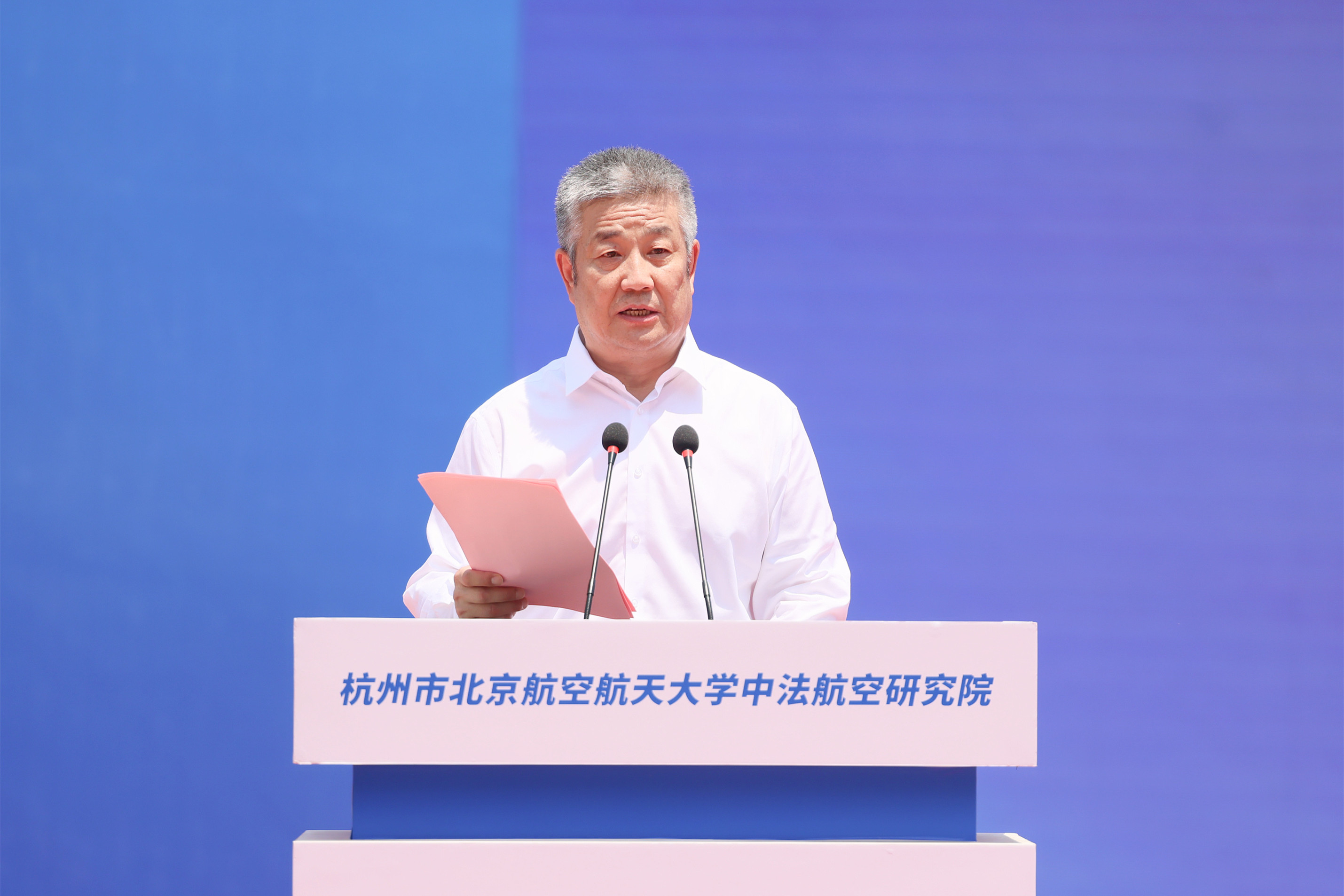 刘颖在致辞中表示,余杭是中华文明圣地、是创新活力之城、也是生活品质之区,北航中法航空研究院揭牌成立、北航中法航空校园启用,必将奏响北航建设中国特色、世界一流大学的新乐章,为余杭、杭州以及全国航空航天领域人才培养与技术研发补上关键板块,也必将成为余杭区展示古城与新城链接、历史与现代交汇、文化与科技融合的一个重大标志性成果。余杭区将以北航中法航空研究院揭牌成立、北航中法航空校园启用为新起点,全程全面做好各项服务保障工作,全力支持研究院攻坚航空领域关键技术,成为高水平中外合作办学基地。同时期待研究院发挥科教融合发展优势,加快带动周边科技成果转化、创新型企业孵化和未来产业培育,形成高尖技术、高端企业、高效资本、高新人才集群联动发展的生动图景,助力余杭打造科技创新策源地的重要新中心,成为综合性国家科学中心核心承载区。