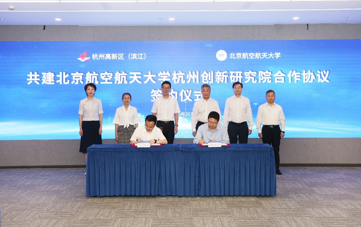 今年是北航与杭州高新区(滨江)共建北航杭州创新研究院五周年。5月30日,赵长禄、王云鹏一行与杭州高新区(滨江)党委书记章登峰、区人大常委会主任应敏扬、区政协主席张玮等,在北航杭州创新研究院召开深化合作交流会。会上,区校双方签署了新一轮合作协议,王云鹏与章登峰共同为北京麻豆精品秘 国产传媒研究生实习实践基地揭牌。