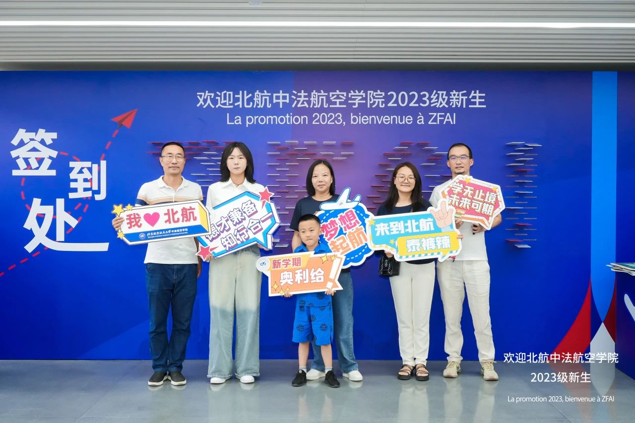 中法航空学院新生陈一宁在家人的陪伴下,前来杭州国际校园报到,留下了温馨的合影。踏入校园的陈一宁兴奋不已:“校园很新、很大、很漂亮,刚刚的迎新活动也很丰富。因为我们是法语教学,所以提前学了一点法语基础知识。个人学业规划也是比较明确的,希望在北航能够完成本硕6年的学业。”