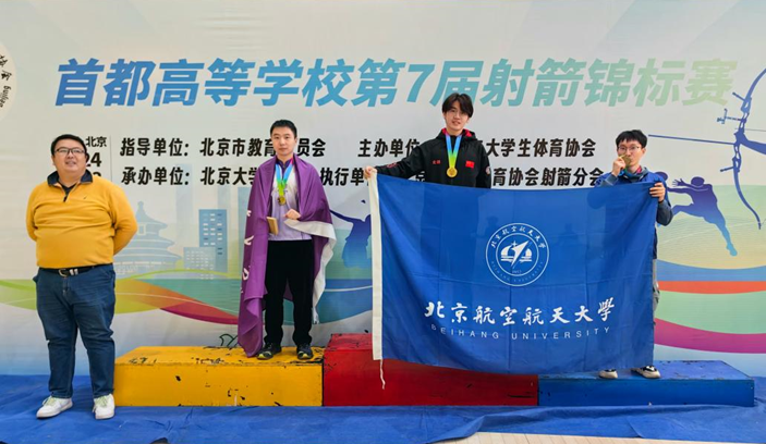 在反曲弓男子团体项目中,由杨轩、黄兆存、岳博仑组成的北航代表队接连淘汰对手,顺利进入决赛,在冠亚争夺赛中憾负对手,获得该项目亚军。