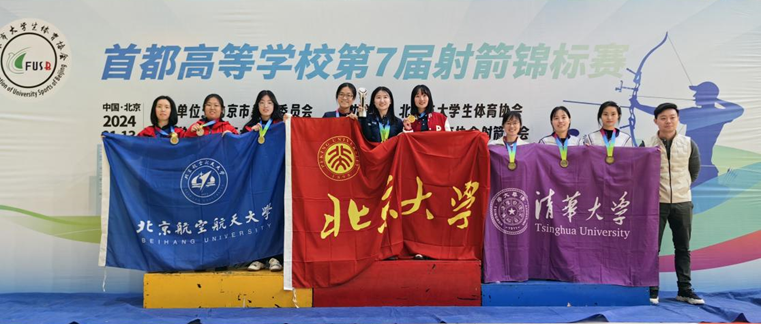 在反曲弓女子团体项目中,由邱欣哲、姚芳怡、董瑾初组成的北航代表队连下两城,顺利进入决赛,决赛中一度打出四个十环的优秀成绩,虽最终憾负对手,但打出了气势,赛出了风格,获得该项目亚军。