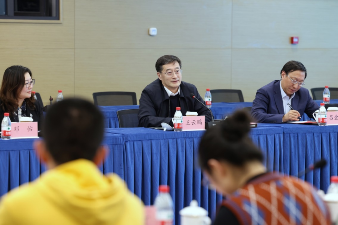 座谈会上,学生代表们积极建言献策,气氛热烈。王云鹏认真听取了同学们的意见建议,对同学们在生活中面临的问题和学习就业中遇到的疑惑一一做出回应。