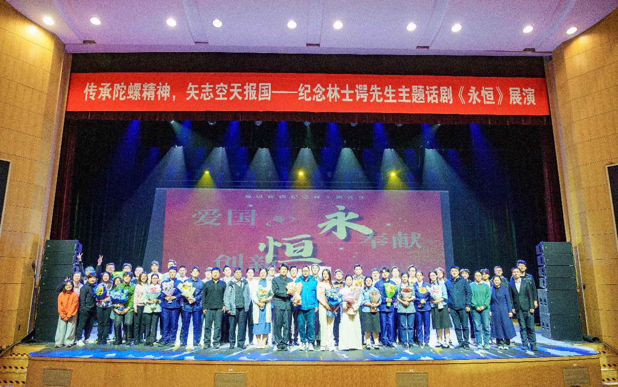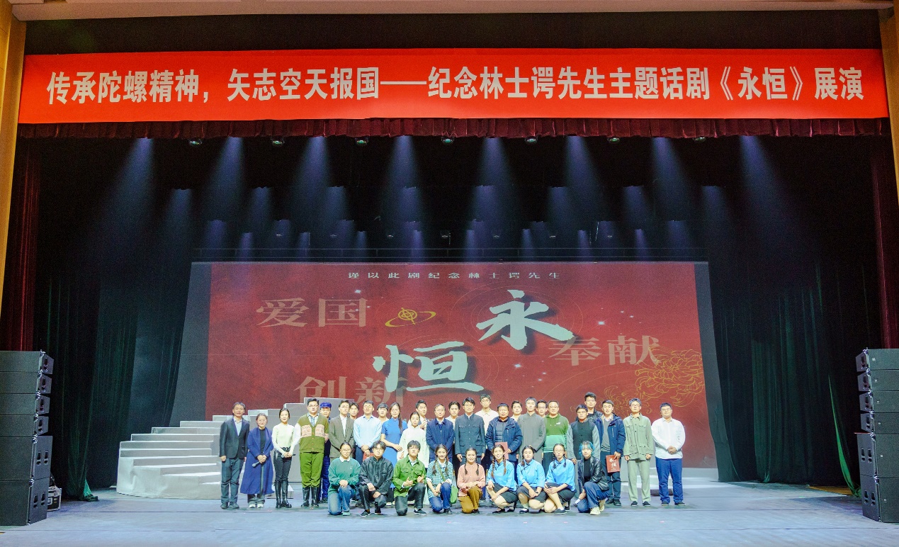 《永恒》是首部“北航脊梁”话剧,由仪器科学与光电工程学院学生自编自导自演,于2015年首演,近9年面向全校师生公演9次。《永恒》话剧故事脉络以林士谔先生三个阶段的人生经历为叙事主线。一是对祖国永恒的热爱。1913年7月1日,林士谔出生于广东省广州市。日本发动九一八事变后,战火烧到上海。当时在上海交通大学求学的林士谔亲眼目睹祖国被外敌侵略,战机呼啸从头顶飞过,遂立志“航空救国”,远赴重洋到麻省理工学院航空系攻读博士学位。留学期间,林士谔努力钻研,创造性提出“高阶代数方程式的劈因解根法”,后被命名为“林氏法”(Lin’s Method),成为当时国际数学界唯一以中国人命名的数学方法。博士毕业后,林士谔毅然放弃待遇丰厚的工作,毅然重返祖国。二是对创新永恒的追求。回国初期,物质极度匮乏,科研条件十分简陋。林士谔不惧艰难,没有教材就自己动手写,没有仪表传感器实验设备就自己动手做,没有条件就创造条件,没有物资就找东西代替。1952年,作为北京航空学院建校八大元老之一,林士谔担任飞机设备教研室室主任,创建我国第一个陀螺仪表及惯性导航研究室,成功研制了我国首例新型液浮陀螺和动力调谐陀螺样机,填补了国内空白,实现了我国的陀螺领域从无到有,被钱学森先生誉为“中国陀螺与惯性导航学科的鼻祖”。三是对人民永恒的奉献。林士谔先生一生致力于教育事业,40年如一日扎根教学第一线,严谨治学,倾心育人,在他的努力和带领下,建立了我过第一个惯性技术及导航设备博士点。他一生培养了如张启先院士、张有翼、毛剑琴等航空航天领域的领军人才和大批科技骨干,为我国航空航天事业奠定了坚实的人才基础。身为教育家,林士谔先生将自己的一生永恒奉献于人民。