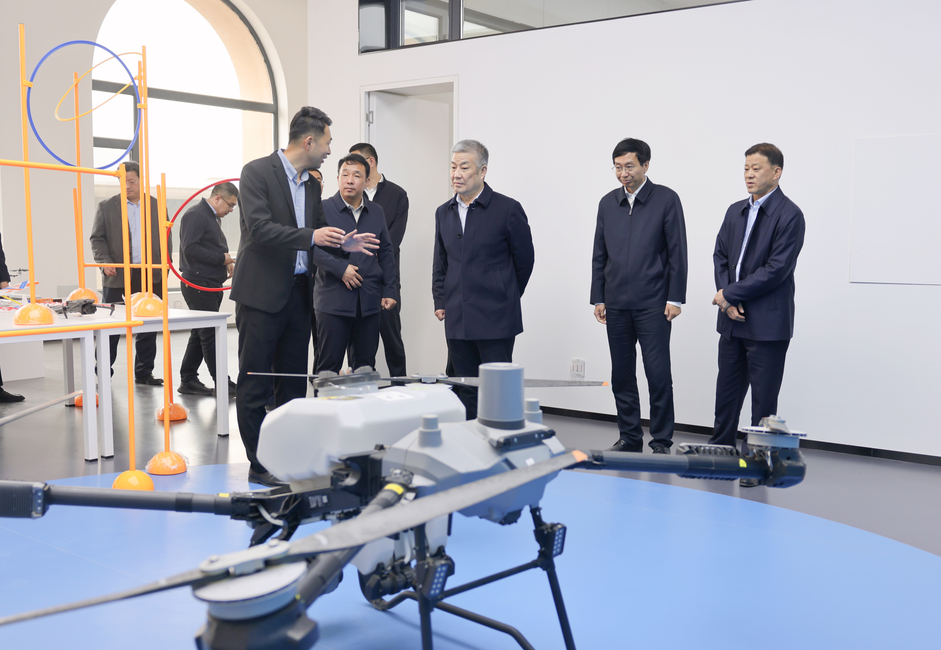 赵长禄一行首先来到阳坡村村委,听取了北航驻中阳县挂职副县长马田、驻中阳县阳坡村第一书记伊志豪的介绍,深入了解了阳坡村在乡村振兴、产业发展、社会治理等方面的情况。在老年日间照料中心,赵长禄同居住在中心的老人亲切交流,详细询问了他们的生活和身体情况,表达了学校党委对他们的亲切关心,给老人们送上慰问品,“希望乡亲们的幸福生活越来越好”。在新落成的青少年无人机研学基地和科技楼,赵长禄对阳坡村积极引进学校资源和社会专业力量,开展青少年研学交流和科技创新活动给予了充分肯定,对阳坡村社会主义新农村建设取得的喜人成绩给予高度评价。