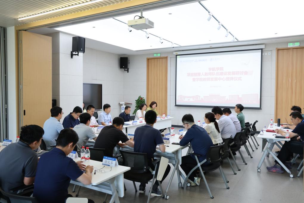 北航新闻网6月20日电(通讯员 宫立媛/文 王旭/摄影)6月17日,为响应学校人才培养创新举措,推动宇航学院项目制实验班工作,由教务部、教师发展中心和宇航学院联合举办的“项目制育人教师队伍建设发展研讨会暨学院教师发展中心授牌仪式”在沙河校区举办。北航副校长闫晓军,航天一院一部总设计师娄路亮,教务部、教师发展中心、宇航学院主要负责人及学院项目制工作相关方向教师代表出席会议。会议由教师发展中心主任李红捷、宇航学院党委书记徐亚军共同主持。