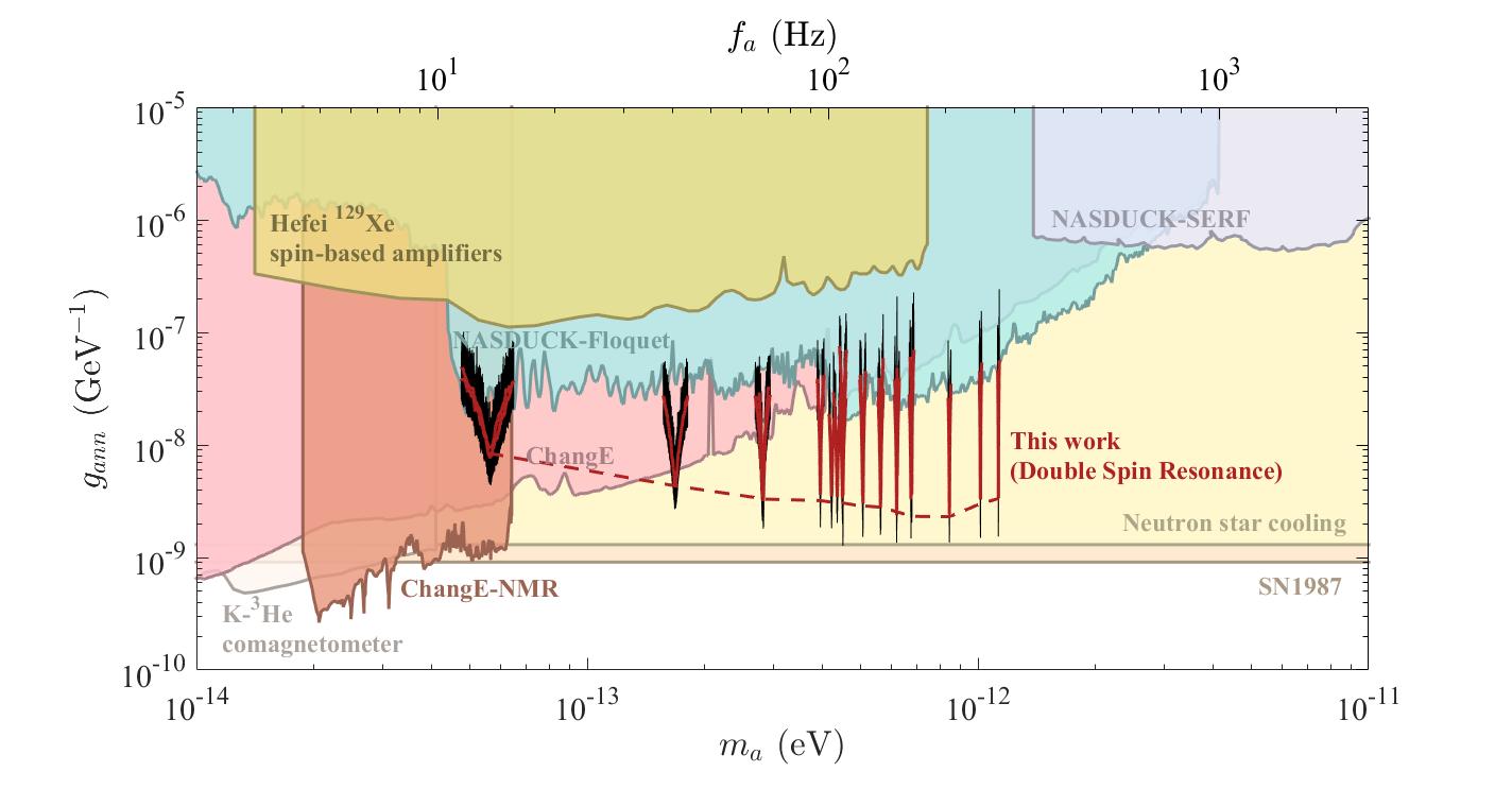 这项技术已经被验证用于探索宇宙中一种神秘的暗物质候选粒子——类轴子(axion-like particles),用以揭开占宇宙总物质组成约85%的暗物质的神秘面纱。研究团队利用该传感器长时间收集采样信号,实现了在类轴子粒子质量6.74×10-13eV处,轴子-中子耦合强度系数结果超过原有实验室纪录约1个量级。这个小小的量子传感器,正在为寻找宇宙的“隐身成员”提供最先进的线索。