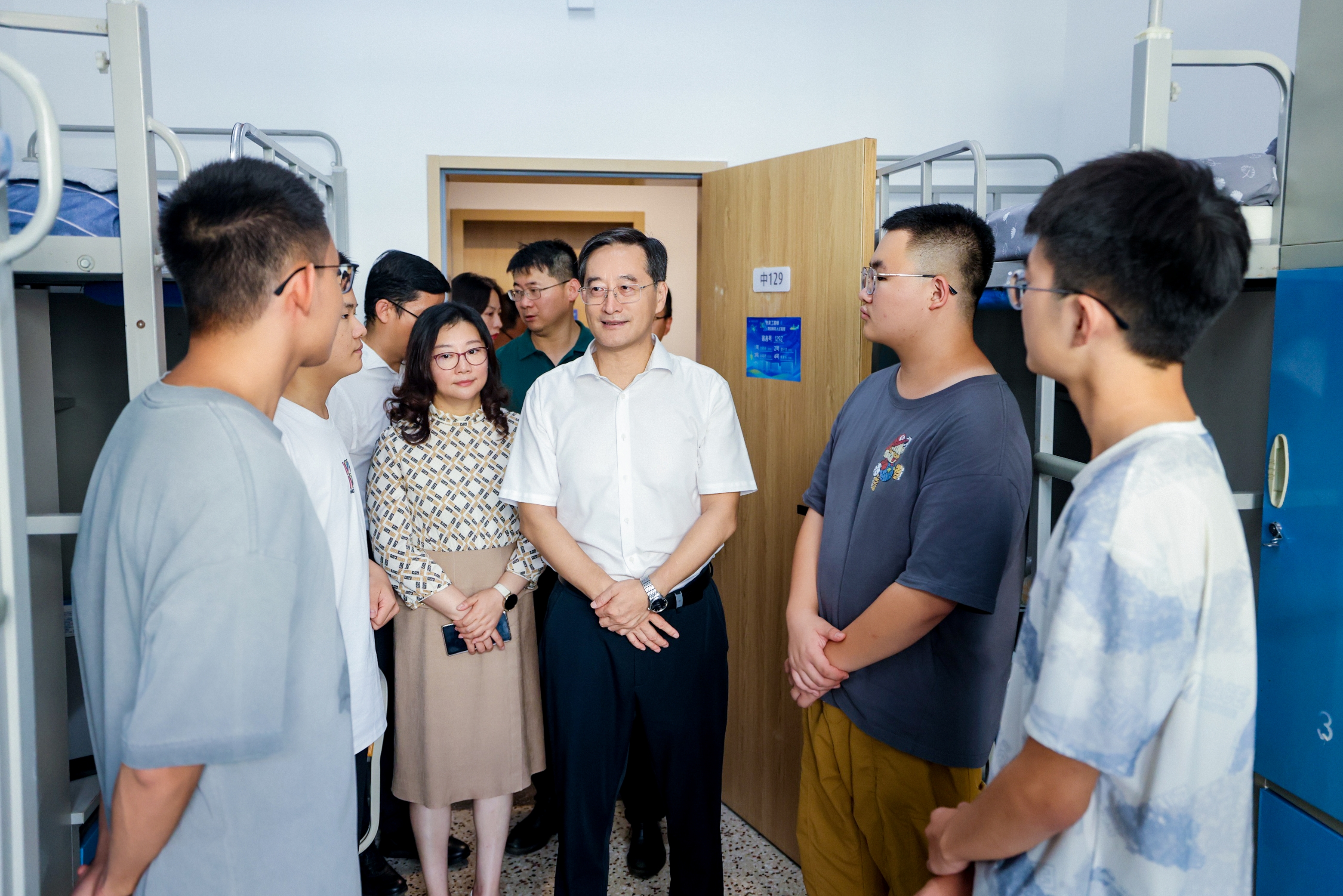 在新生宿舍,赵长禄、王云鹏仔细询问同学们的生源地及所学专业,了解新学期准备情况,勉励大家充分利用好学校的各种优质资源,勤奋学习、团结协作、共同进步,努力成长为一流人才,将所学服务国家战略需求,成为祖国和人民可期的栋梁之材。