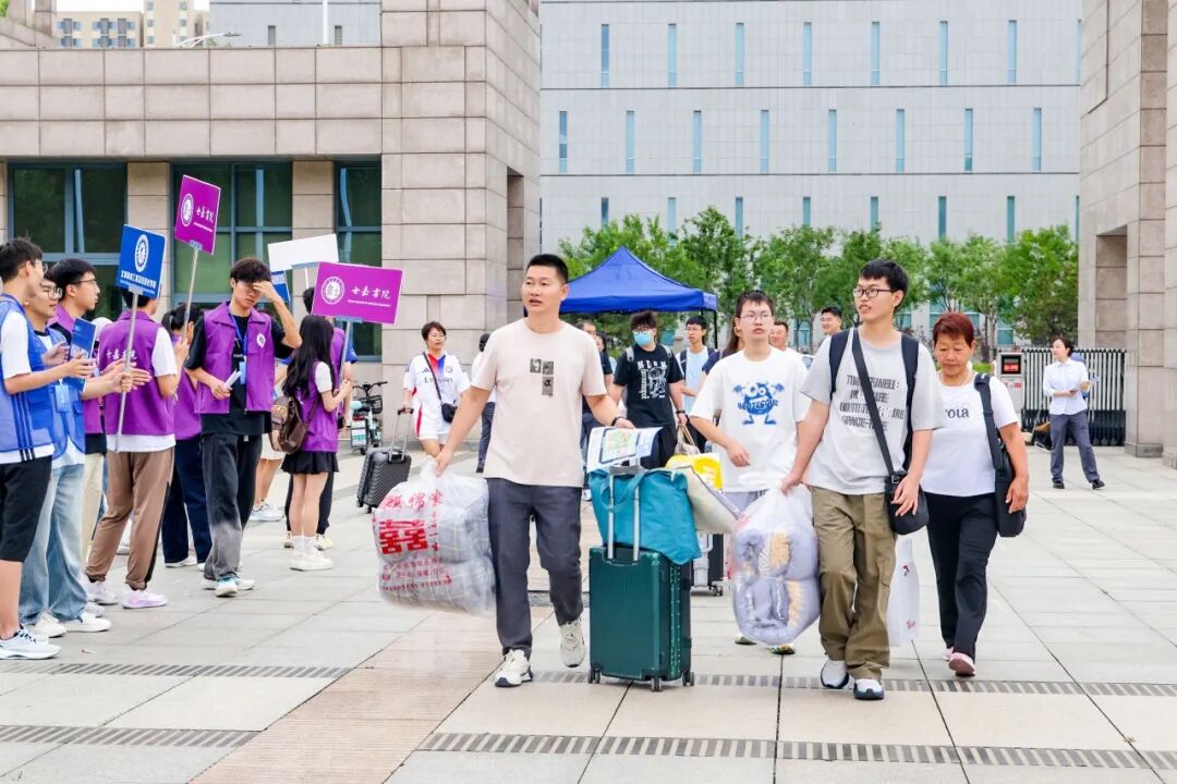 本次迎新以“安全、温馨、细致、有序”为原则,全面贯彻“以学生为中心”的服务理念,推出多项暖心举措:在各大火车站设立接站点,为新生提供便捷到校服务;组织志愿者团队提供一对一咨询引导和行李搬运服务;为报到当日过生日的新生送上专属生日餐券,传递温暖祝福;迎新现场集成学费缴纳、绿色通道、户口迁移、校园服务、银行卡办理等一站式服务窗口,大幅提升办理效率;通过科学规划入校路线与报到流程,全力保障迎新期间的安全与秩序。