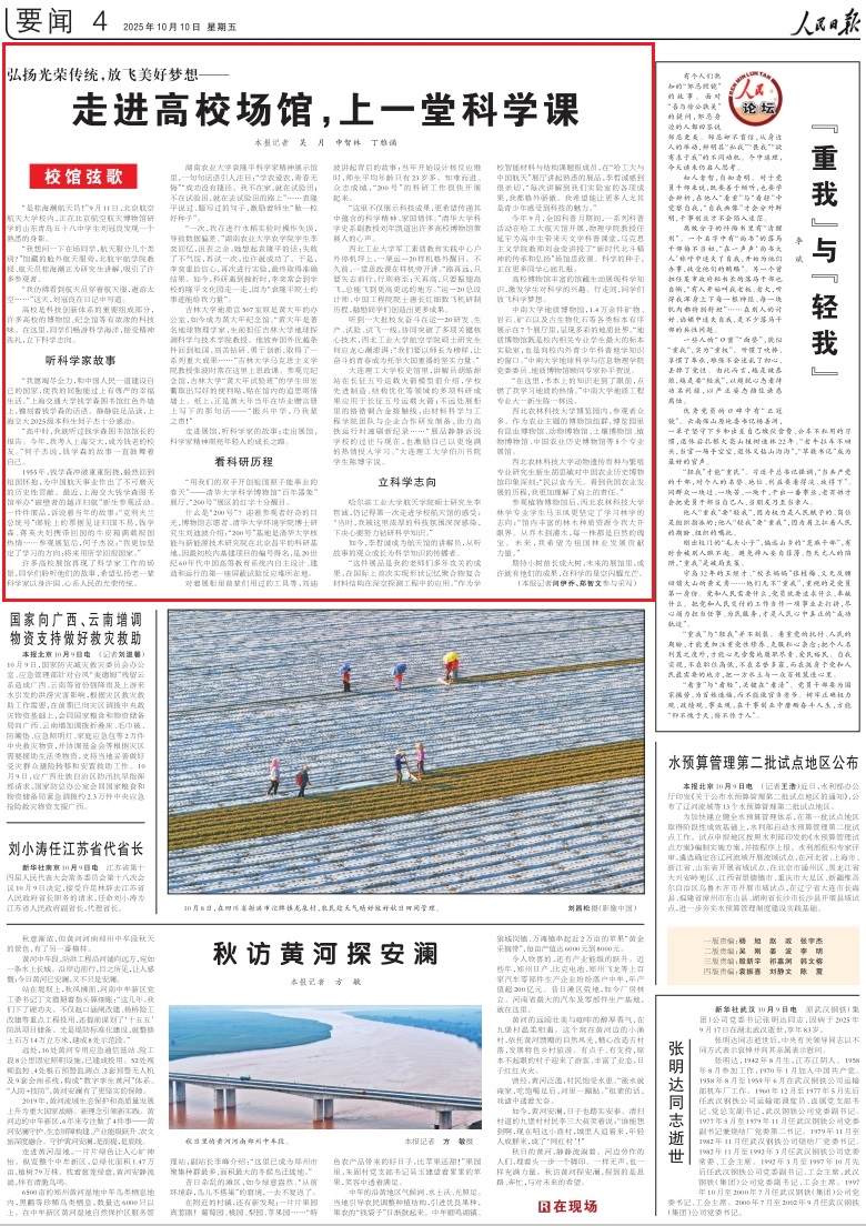 《人民日报》要闻版:弘扬光荣传统,放飞美好梦想——走进高校场馆,上一堂科学课