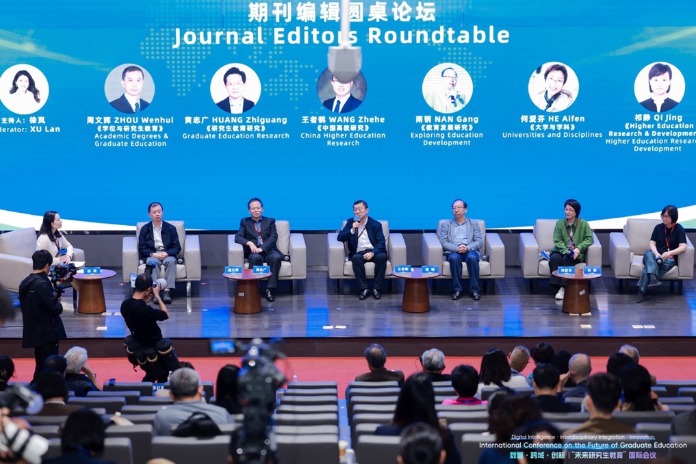 在期刊编辑圆桌论坛上,北京理工大学研究生教育研究中心副主任、《学位与研究生教育》杂志社社长周文辉,中国科学技术大学、《研究生教育研究》编辑部执行主任黄志广,《中国高教研究》副主编王者鹤,上海市教育科学研究院、《教育发展研究》副编审南钢,教育部学位中心研究与发展处高级项目主任、《大学与学科》期刊编辑何爱芬,祈静等期刊编辑围绕“教育研究论文的写作、发表与学术伦理”,就教育政策解读的多种模式、研究的理论框架构建、本土化与国际化的平衡,以及AI时代下的学术诚信与同行评审伦理等关键议题进行了深入交流与探讨。