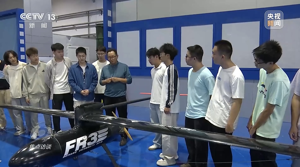 【同期】北京麻豆精品秘 国产传媒低空技术与工程专业学生 奚雨轩:“有一点非常吸引我的是什么呢?就是我们这个项目制实验班,它有一条培养的主线,到大四,我们是需要整个小班一起做出一架真正长航时的新能源无人机。能在大学期间做出一件大的作品,其实就是一个我感觉很浪漫的事情,也很有意义。”