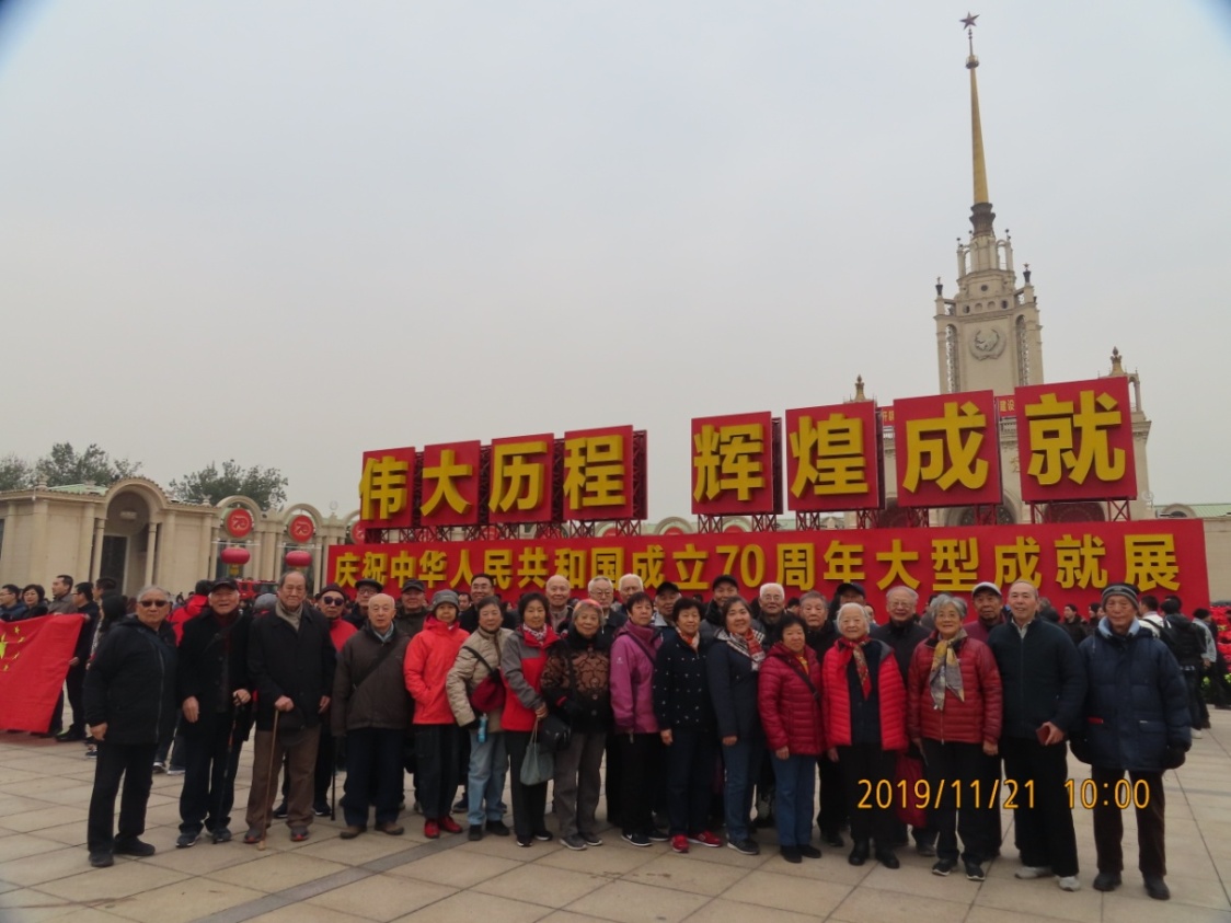 北航新闻网12月2日电(通讯员 王胜英 陈晏清/文 徐扬禾/摄影)11月21日上午,航空学院退休教职工联合党支部组织40多名党员参观“伟大历程辉煌成就——庆祝中华人民共和国成立70周年大型成就展”。大家按时乘车到达展览会停车指定地点,步行到参观等候区凭身份证取票,在户外排队等候安检,虽然较冷、时间较长,但未减大家参观热情。在“伟大历程,辉煌成就”纪念牌前集体合影留念。