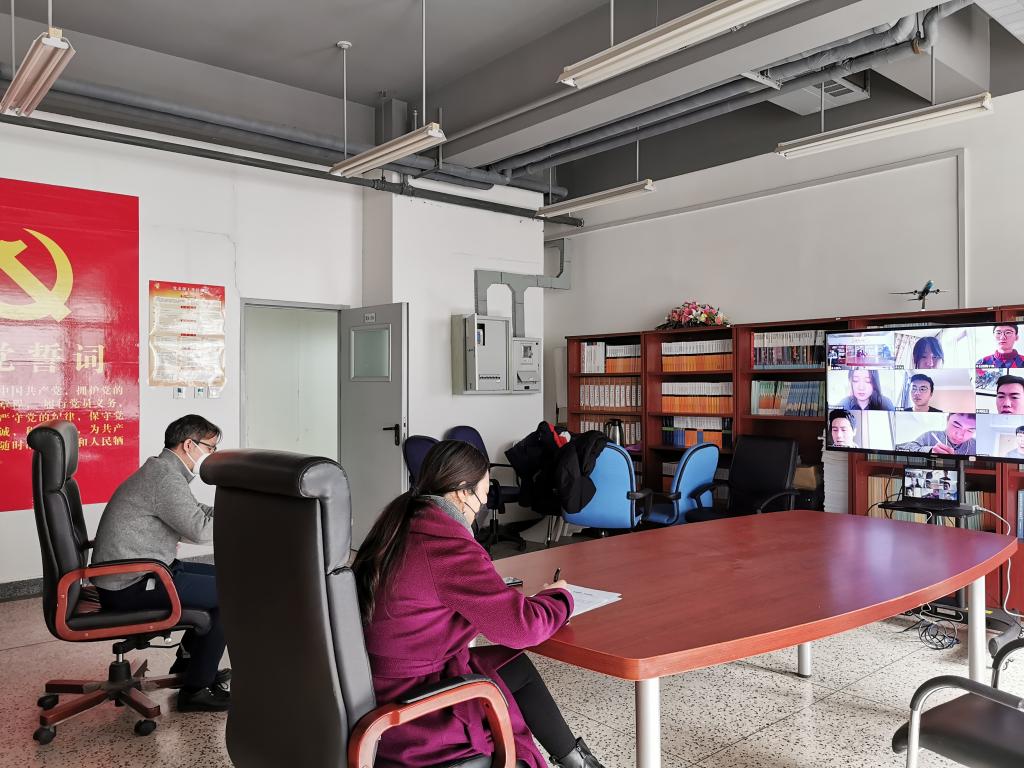 北航新闻网2月22日电(通讯员 李昱璇)2月21日上午,飞行学院飞行技术党支部召开了“云端战‘疫’,共克时艰”抗击疫情主题党日云活动。飞行学院党委书记朱颖、副书记谷萌、飞行技术党支部书记赵圆在沙河校区实验四 204会议室与飞行技术党支部党员代表、入党积极分子代表“云上”交流。