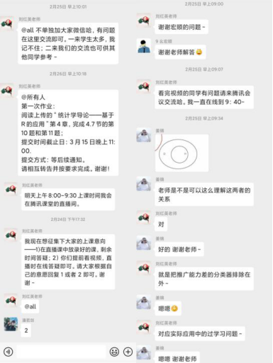 尽心竭力,精益求精。自开展线上教学一周以来,刘红英兢兢业业,严谨认真,春风化雨。她讲授的研究生专业理论核心课《统计学习》广受同学们好评。