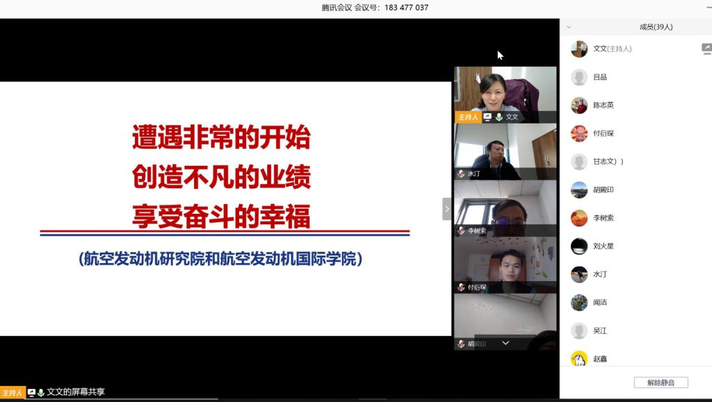“铸心”支部分会场的与会教师对“两院”成立以来的各项工作规划部署、已开展的工作和已取得的成绩表达了充分的肯定与支持,纷纷表态会全力参与“两院”各项工作,凝心聚力,高效协同,为航空发动机事业贡献自己的力量。老师们重点围绕科研“4+1+1”工作、人才培养、队伍建设、评价体系和条件建设等方面工作发表感言并提出可行性意见和建议,身处湖北疫区的吴江老师和远在海外的林宇震老师也参加了会议并进行了发言。丁水汀参与了本组讨论。