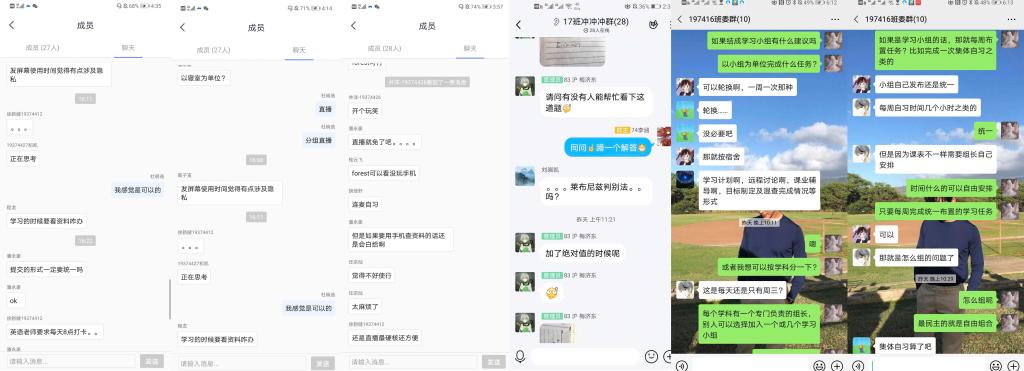 各团支部根据分团委新学期部署要求,结合当前线上“教”与“学”实际情况,以“凝聚青春正能量,众志成城抗疫情”为主题,在团课后召开团员大会,开展班风学情民主研讨,组织制定线上学习的“一班一策”。全体团员群策群力,精心讨论设计集体攻略,做到“一支部一特色”“全员参与,全员覆盖”,引导全体学生“相互帮助,携手守望”。197411团支部以宿舍为单位结组,成立学习小组开展互帮互助。197418团支部以集体打卡塑造班级学风,以小组交流开展个性探索,通过“点面结合”的形式,相互监督促进集体良好学风。197421团支部制定答疑计划和资源共享计划,班团干部带头执行。197426团支部制定“早晚计划”,早起晨读打卡,晚上利用Forest习惯养成软件,以建立房间集体“种树”的形式“云”监督全体晚自习。