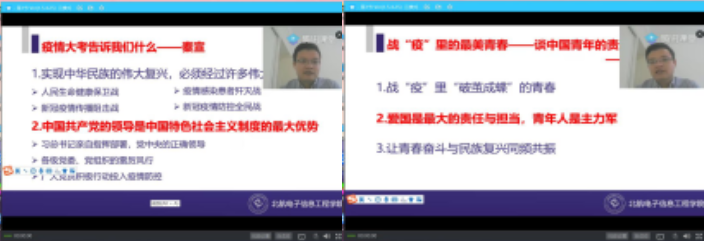 北航新闻网3月15日电(通讯员 谢正洋)3月11日下午,电子信息工程学院本科生以大班会的形式开展了主题为“重温防疫思政课,宣扬思想正能量”的“学习日”活动。活动开展前,电子信息工程学院学工办细化了本周“学习日”的工作方案并进行了集体备课与准备工作。学院党委副书记、分团委书记、兼职辅导员参与了本次学习日。