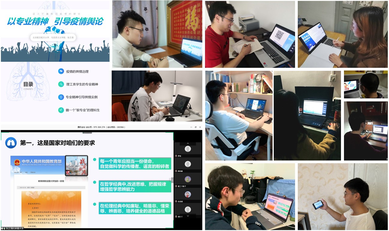 在学生党员自主开展理论学习的基础上,高博班党建工作站特邀我校马克思主义学院青年教师张正清博士带来了题为“坚决打赢新冠疫情的硬仗——以专业精神引导疫情舆论”的在线主题讲座。报告中,张正清从疫情的舆情治理入手,结合疫情发展、时事热点和社会思潮,带领大家认识了理工科学生在重大社会舆情事件中应有的社会角色、专业精神和责任担当,报告后的互动与交流讨论环节反响热烈。通过此次线上讲座,站内党员和参与同学对于网络舆情发展和理性科学应对有了深刻认识,进一步明确了作为理工科专业博士生应具有“求真”与“负责”的专业态度,理性参与网络言论,积极主动配合党中央及学校落实好疫情防控的各项部署要求。