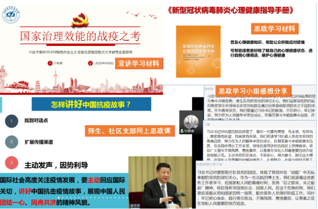 流体系博士、19级硕士分别邀请北航第五期研究生宣讲团讲师于秋漫和朱祎昀作题为《国家治理效能的战疫之考》和《在疫情防控中争做时代新人》的宣讲报告,结合战疫实例充分认识国家治理体系和治理能力,理解我国抗疫取得阶段性胜利的制度优势。