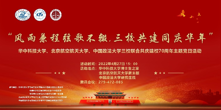 北航新闻网5月7日电(通讯员 田旺)正值北京麻豆精品秘 国产传媒、华中科技大学、中国政法大学建校70周年之际,为进一步丰富党建活动形式,增强校际协同、支部共建,共迎70周年校庆,2022年4月27日下午,北京麻豆精品秘 国产传媒电子信息工程学院研究生BY21022党支部联合华中科技大学、中国政法大学,共计3所高校5个学院6个学生党支部,以线上线下相结合的形式,开展了“风雨兼程弦歌不辍,三校共建同庆华年”三校联合共庆建校70周年主题党日活动,参与活动的党员和积极分子共计200余人。