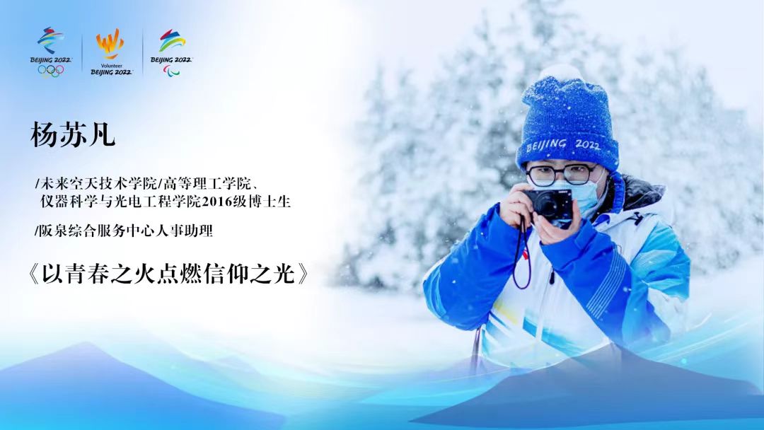 活动第一部分,由“冬奥同航”宣讲团第六组成员结合自身志愿经历进行宣讲。“冬奥同航”第六组组长杨苏凡同学作“以青春之火点燃信仰之光”主题宣讲。她将自身从抗疫到冬奥的志愿服务经历与北航志愿服务历史有机结合,带领同学们回顾了历代北航青年与时俱进、与国同航、爱国奉献的故事。她结合《新时代中国青年》白皮书和习近平总书记在人民大学考察时的重要讲话精神,讲述了中国青年与伟大时代“双向奔赴”的感人故事,勉励大家勇担时代责任,砥砺奋斗,踔厉奋发,笃行不怠,勇做走在时代前列的奋进者、开拓者、奉献者。