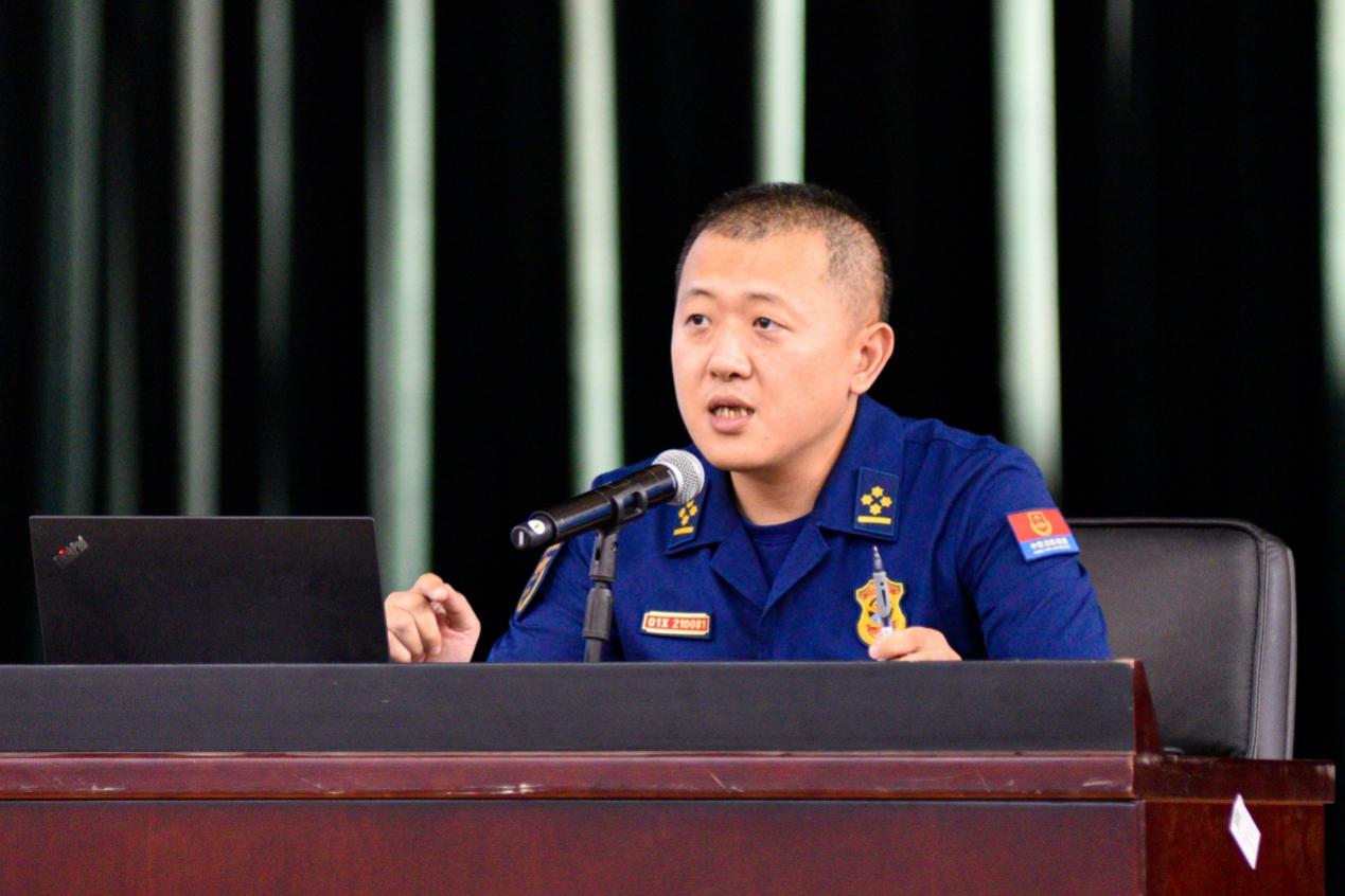 来自北京市昌平消防救援支队的马铭阳警官围绕高校火灾特点,通过一个个形象生动的真实案例,讲解了火灾危险性,教大家如何报警,如何灭火,如何逃生,为新生们上了一堂极其生动的消防安全培训课。
