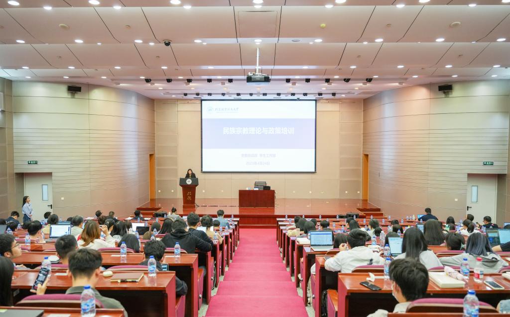 北航新闻网4月27日电(通讯员 陈骥 徐翰林 窦丹丹/文 记者 邸白鹭/摄影)为深入学习贯彻习近平总书记关于做好新时代党的统一战线工作的重要思想,切实做好学校铸牢中华民族共同体意识教育和宗教工作,提升一线工作人员民族宗教理论和政策水平,4月24日下午,校党委统战部联合学生工作部举办民族宗教理论与政策培训会。本次培训会特邀原中央民族大学哲学与宗教学学院院长刘成有教授、中央民族大学中华民族共同体概论教研中心主任王冬丽副教授作专题报告,学生工作干部、思政课教师、专职组织员及相关党群部门专职干部参会,校党委统战部常务副部长韩慧瑜主持。