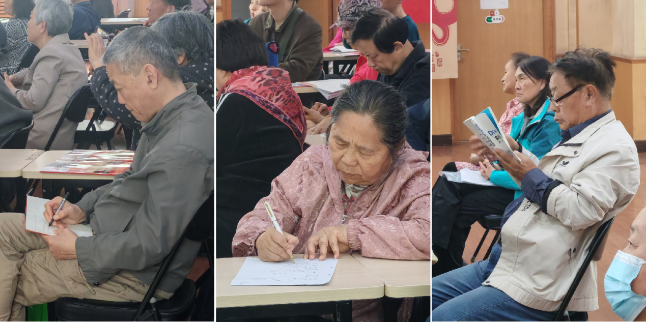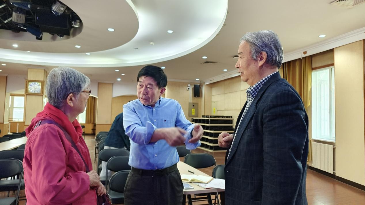 现场老同志们聚精会神,不时记笔记或拍照记录。讲座结束后,讨论气氛不减,不少老同志围住刘连忠请教AI使用心得,分享学习体会: