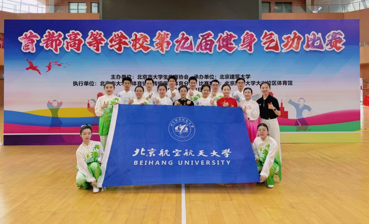 北航新闻网5月23日电(通讯员 刘宇夏)5月18日,由北京市大学生体育协会主办的首都高校第九届健身气功比赛在北京建筑大学大兴校区举办。体育部周宇娇老师带领北航太极拳俱乐部15名队员参赛,队员们凭借扎实的功底与默契的团队协作,夺得1项第一名、3项第二名、2项第三名和多项前八名,最终斩获甲组团体总分第二名。
