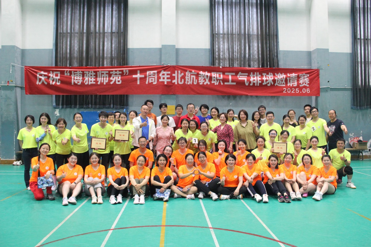 此次气排球赛作为“博雅师苑”十周年系列庆祝活动的重要组成部分,意义非凡。自2023年气排球项目组织以来,气排球活动持续发展,吸引了众多北航教职工的积极参与,逐渐形成了良好的运动氛围,成为校园文化生活中的一道亮丽风景线。本次赛事的成功举办,更是为“博雅师苑”十周年系列庆祝活动掀起了一波小高潮,也展现了学校教职工昂扬向上、团结奋进的精神风貌。