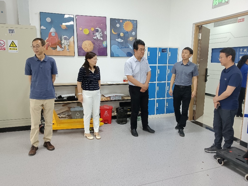 在学生工位区域,宇航学院党委书记徐亚军叮嘱各系负责人要增强安全意识,遵守安全规定,保持工位整洁有序,注意用电安全,杜绝私拉乱接电线等行为。