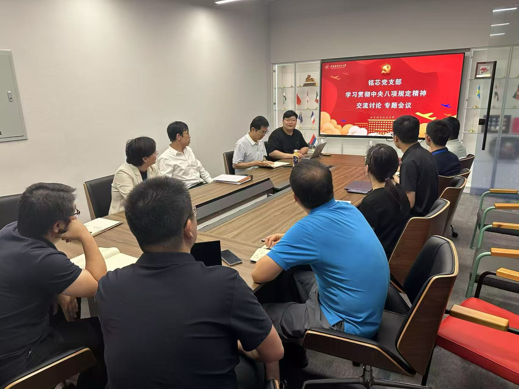北航新闻网6月23日电(通讯员 胡晏铭)6月20日,集成电路学院铭芯党支部在北航第一馆314会议室召开深入贯彻中央八项规定精神学习教育交流讨论专题会议。会议围绕6月18日学校“集中大课学习暨深入贯彻中央八项规定精神学习教育专题培训”内容展开深入研讨,进一步强化支部成员的政治意识、规矩意识和纪律意识。