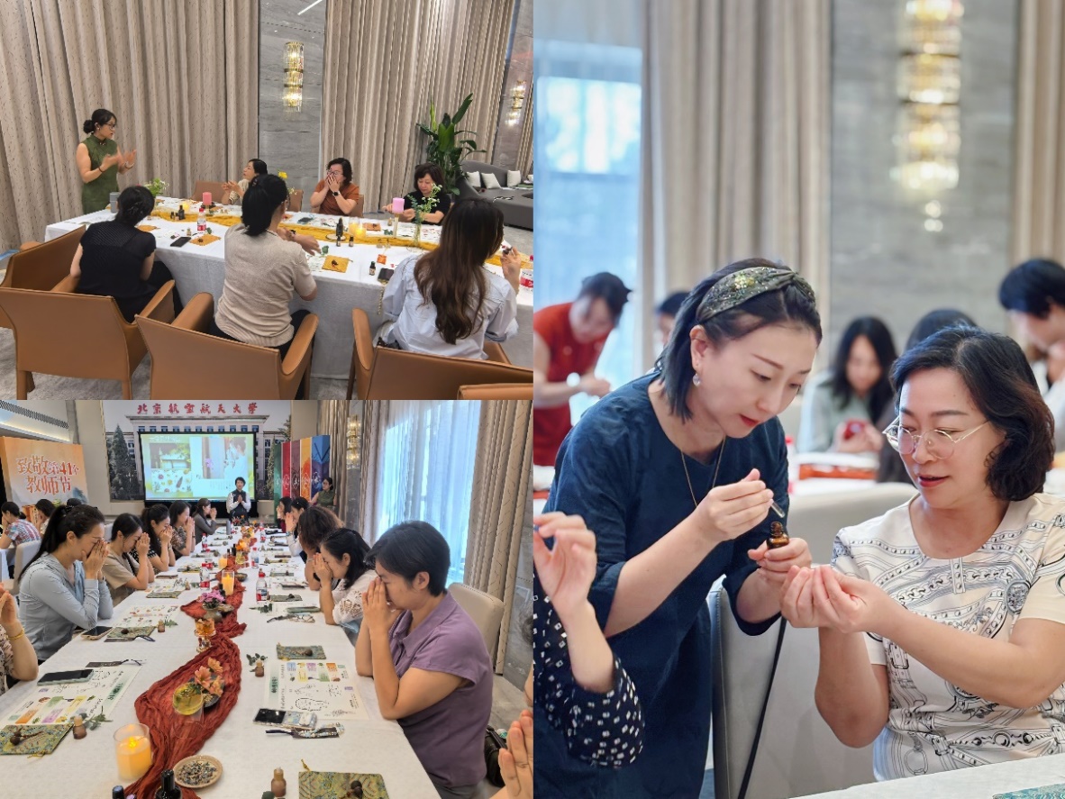 北航新闻网9月11日电(通讯员 张芳 王星歌/文 王杰/摄影)9月8日,由北京市教育工会主办、北航工会承办的北京市教育工会庆祝第41个教师节暨教职工传统文化兴趣汇“五行生香·精油凝韵”体验活动在北航学院路校区校友之家举行。北航党委副书记、工会主席刘树春,北京市教育工会副主席张磊等出席活动,高校劳模代表、“青教赛”“青管赛”获奖选手代表及兄弟高校工会代表共同参与。北航工会常务副主席朱颖主持活动。