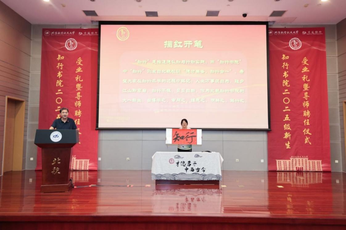 北航新闻网9月15日电(通讯员 李子晗 邹昕冉 高棲桐)金秋送爽,丹桂飘香。9月13日下午,知行书院2025级新生“受业礼”暨导师聘任仪式在学院路校区新主楼第一报告厅举行。文科大类专业学院领导老师、知行书院2025级导师代表、知行书院执行团队全体成员以及2025级全体新生共同参加。