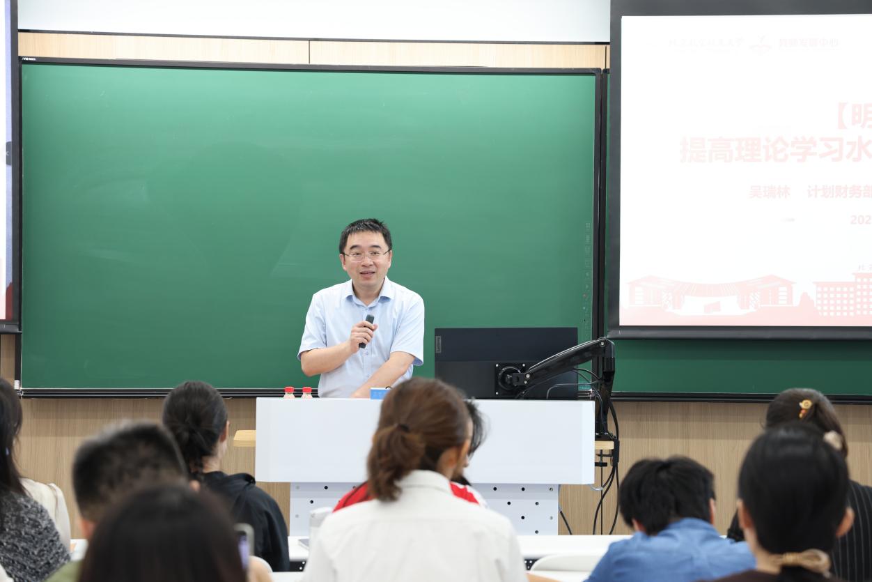 吴瑞林作《提高理论学习水平 练就调查研究本领》专题讲座。首先,他深入解读了习近平总书记关于教育强国、新质生产力与“双一流”建设的重要论述。并指出学校以理论指引实践,通过科学设定标准、优化学科结构、构建空天信融合的一流学科生态体系,推动数智赋能教育,加强基础与交叉学科建设,服务新质生产力发展。随后,他系统阐述了文献调研、访谈、问卷等研究方法。结合实际案例,提出做好调查研究的四个关键要素:一要“实”,研究问题要立足实际、调查过程要深入实地、建议要追求实效;二要“深”,要用心洞察问题背后的深层逻辑;三要“全”,要全方位、多角度了解问题;四要处理好调查、研究两个环节。最后,他希望老师们做到理论学习与调研实践相结合,将提升调查研究能力内化为一种工作态度和作风,持续练就这项必备本领,为学校高质量发展提供坚实支撑。
