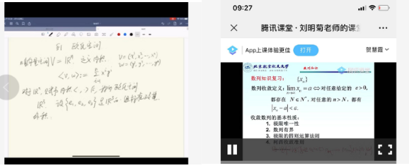 因学校政策有所调整,2月12号下午,基础数学系党支部组织全体党员在线探讨,在保证每位老师都能熟练使用平台,确保开学后能顺利展开课程的基础上,请老师展示了不同的授课方式。重点演示了五种授课模式:张世金老师在腾讯会议平台使用IPAD进行完全板书直播;刘明菊老师在腾讯课堂平台,通过外接数位板展示了板书结合PPT的授课模式;漆毅老师在腾讯课堂平台,展示了触摸屏电脑通过屏幕分享结合板书的模式;高宗升老师展示了细化PPT,通过色彩强化重点,放慢讲课速度,几乎不板书的授课模式。贺慧霞老师展示了在腾讯课堂通过视频播放的授课模式。