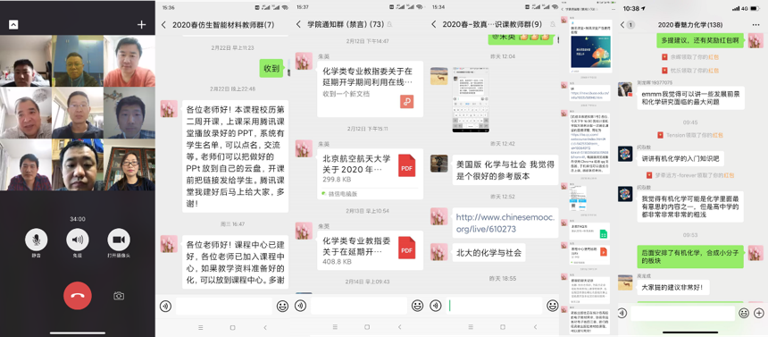 北航新闻网3月3日电(通讯员 赵勇 王静娟)疫情防控的关键时期,化学学院学子们虽分布在全国的各个角落,空间的分隔却挡不住师生们教学相长、化学学习的热情。延期开学不停课,学院全体老师在寒假期间积极培训、反复筹备、认真试讲,确保特殊时期课程不断线。春季学期开学第一周,化院师生齐心协力、共克时艰,圆满完成教学和学习任务,践行了化学人的责任与担当。