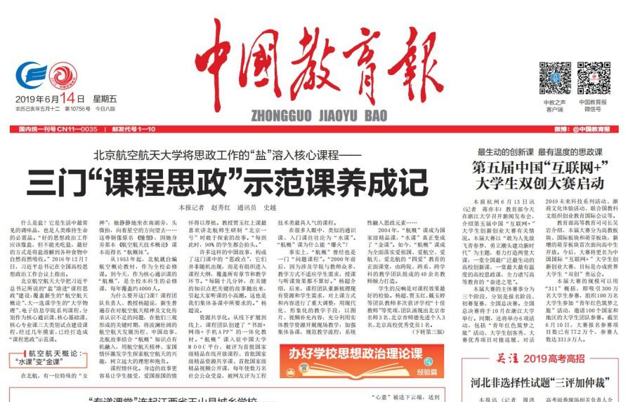 在教育部召开的2020年深化新时代学校思政课改革创新现场推进会,各高校校长走进北航,杨超教授做了“航空航天概论”课程教学现场观摩展示,起到很好的示范效应。