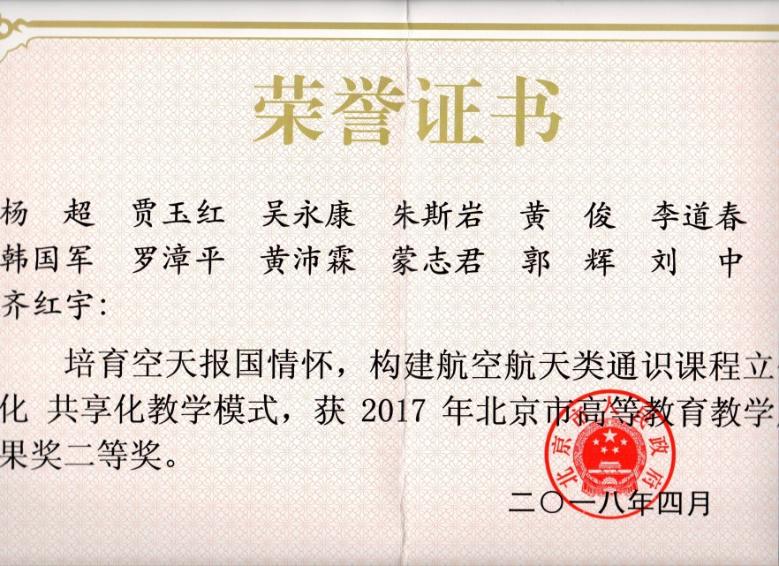 “航空航天概论”北京市精品课证书