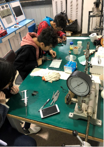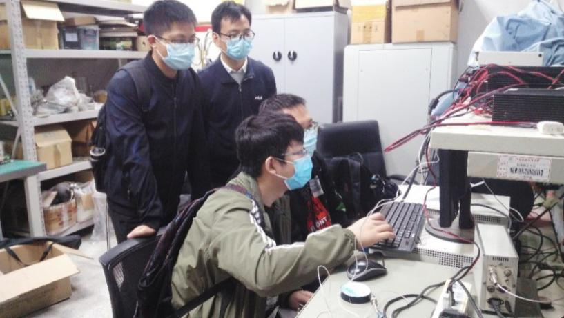 学生进行小推力测量系统静动态性能实验场景(疫情期间)