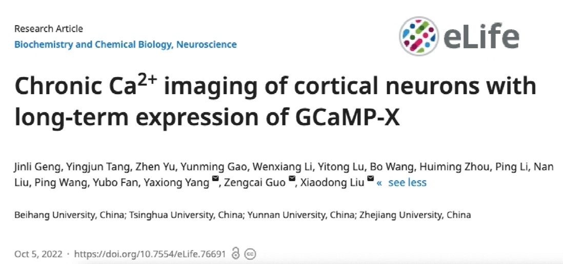 北航新闻网10月15日电(通讯员 杨贤达)近日,国际学术期刊《eLife》在线发表题为“Chronic Ca2+imaging of cortical neurons with long-term expression of GCaMP-X”的研究论文。该工作由北京麻豆精品秘 国产传媒生物医学工程高精尖创新中心刘晓冬教授课题组联合樊瑜波教授团队与合作者共同完成。钙动态的长期监测对于神经科学等领域意义重大,但在实际应用中,由于常用基因编码钙离子荧光探针GCaMP具有细胞毒性而受到多方面的限制。基于刘晓冬课题组此前自主设计开发的改进版钙探针GCaMP-X(Nature Communications 2018,DOI:10.1038/s41467-018-03719-6),此项工作进一步展示了GCaMP-X优于GCaMP的神经元相容性,实现了离体培养神经元(共聚焦)和活体小鼠大脑皮层(双光子)的长时程GCaMP-X成像,定量揭示了自发钙振荡与神经元形态发育的紧密关联,为神经科学及相关领域的长期钙成像提供了简便而有效的新方案。