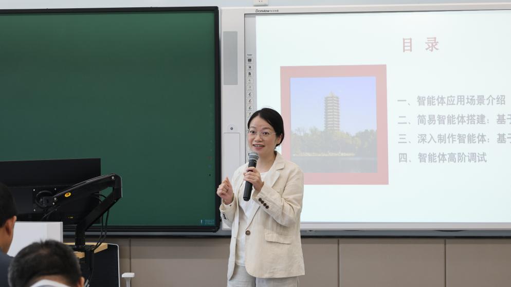 9月5日,北京大学陈江教授受邀作了题为“实用AI教学技能”的专题讲座。讲座中,陈江围绕AI大模型在教学场景的实用价值展开,从五个方面进行讲解与演示。在直接应用AI方面,他演示无线投屏、主观题接龙、AI+分组讨论等如何调动学生积极性。在间接应用AI方面,他重点围绕教师常用的Office软件展开,同时分享纸质文档电子化转换、思维导图智能生成及高品质PPT制作方法。此外,陈江还针对多媒体教学需求,讲解图像编辑生成的优化技巧,演示“图生视频”的操作流程等,并展示数字人在教学场景的应用潜力。讲座尾声,陈江特别强调“教师不仅要持续学习AI技术,更关键的是将AI工具与自身教学优势深度融合。”