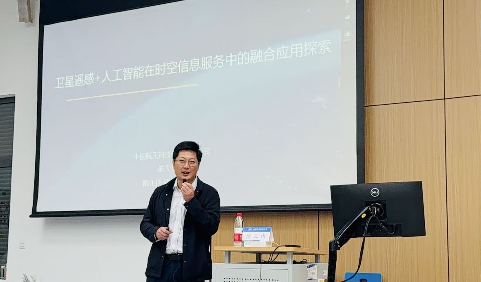 接着,隋正伟围绕卫星遥感与人工智能的融合应用展开深入讲解。聚焦 AI 技术对遥感数据处理的“革新作用”,用遥感监测案例为大家直观展示,AI技术在图像超分辨率重建与信息自动提取环节,对数据处理精度与效率的双重跃升;他延伸至水利监测、应急管理、自然资源勘探等实际场景,结合“导航卫星应用”的对比讲解,清晰呈现遥感卫星数据如何与行业需求深度耦合;结合典型案例分析,为大家生动展示了AI赋能的遥感技术在实时监测、风险预警、决策支持中的卓越能力,为大家勾勒出智慧化时空信息服务的未来图景。