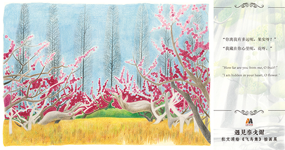 编者按:3月18日,由北航文化与艺术传播研究院、中国青年出版社联合主办的“遇见泰戈尔——杜文涓绘《飞鸟集》插画展”,在北航艺术馆展览大厅正式开展。本次展览系在中国青年出版社2015年3月刚刚隆重推出的彩绘精装、汉英对照新版泰戈尔《飞鸟集》的基础上,以诗歌与绘画艺术“联袂”展览的方式,传播世界经典文学名著的探索和尝试。展览共展出了青年艺术家杜文涓为《飞鸟集》专门创作的插画作品50幅,唯美不甜腻、从容不柔弱,自然澄澈、温暖流露,云淡风轻却恰到好处地勾勒、演绎出泰戈尔诗作的清新意蕴与深邃哲思。北航新闻网现分享“遇见泰戈尔——杜文涓绘《飞鸟集》插画展”作品选,以便各位近距离、多角度、全方面地感受经典文学及艺术作品带来的审美感受和心灵感应。